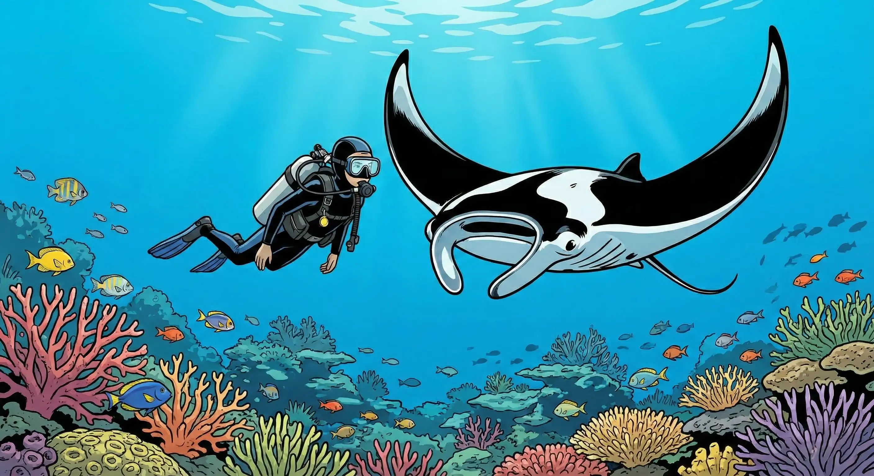 • Manta rays at cleaning stations and feeding areas