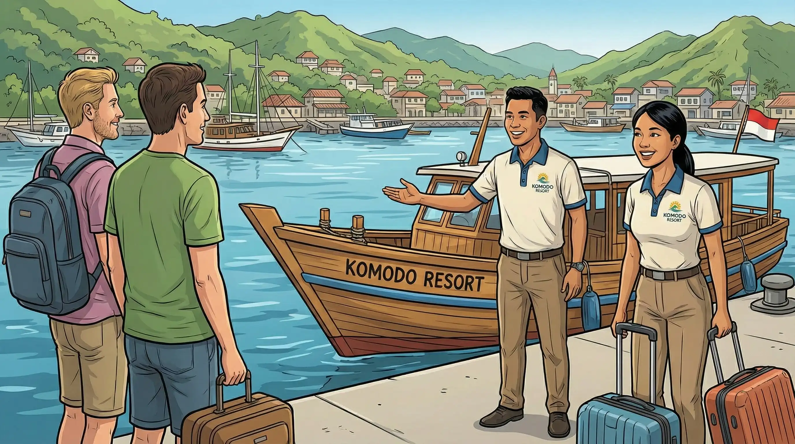 Mit Schnellbooten gelangt man von der Stadt Labuan Bajo in 1,5 bis 2,5 Stunden zur Insel Komodo. Die Insel Rinca, auf der die zweitgrößte Population von Komodowaranen lebt, ist etwa eine Stunde mit dem Boot entfernt. Bei der Planung Ihrer Reise ist es aufgrund dieser Bootsverbindung sehr wichtig, die Ankunftszeit Ihres Fluges zu kennen.