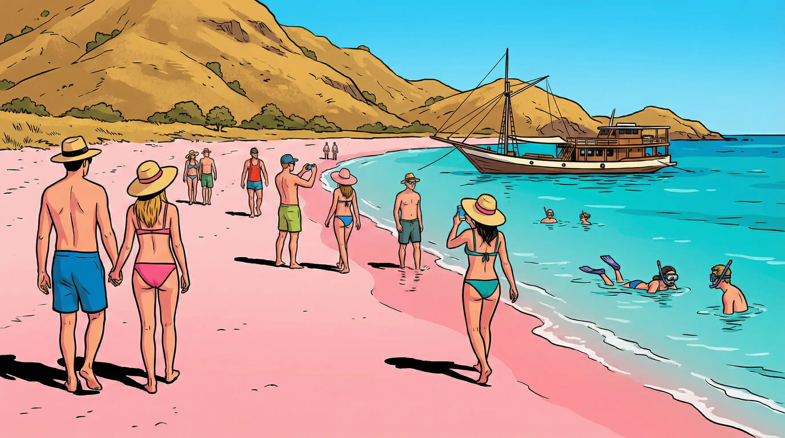 Die Trockenzeit dauert von April bis Oktober und ist geprägt von wenig Regen, ruhiger See und Temperaturen zwischen 22 und 32 Grad Celsius. Die täglichen Wetterberichte zeigen meist blauen Himmel, und die Savannenlandschaften färben sich goldbraun, was die berühmten Ausblicke der Insel Padar und die Küsten der Pink Beach zu großartigen Fotomotiven macht.